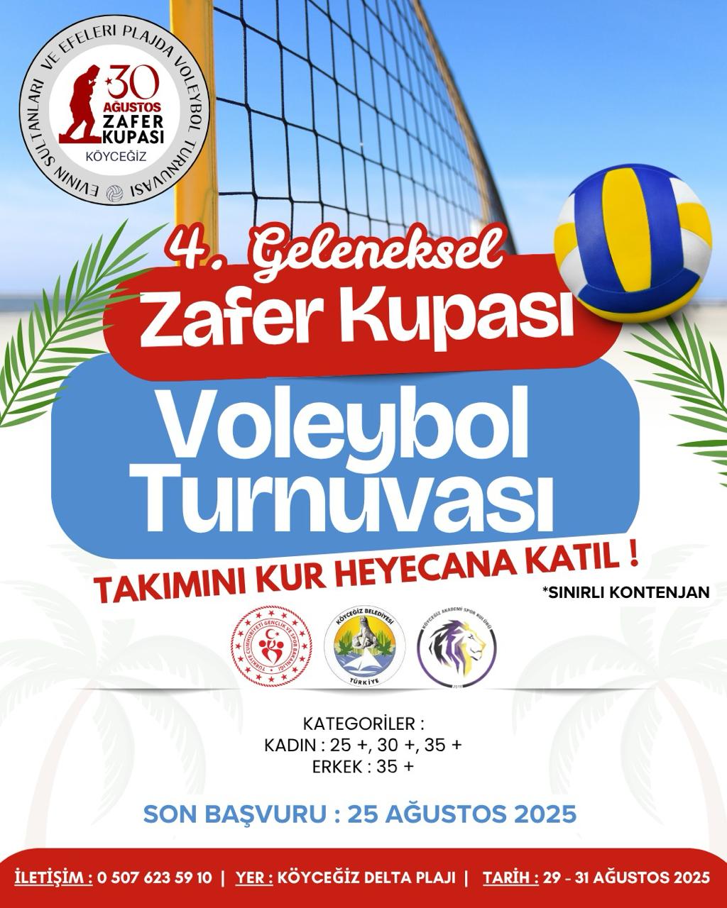 Köyceğiz Belediye Başkanlığı, İlçe Gençlik ve Spor Müdürlüğü ve Köyceğiz Akademi Spor Kulübü işbirliğinde, “Evinin Sultanları” projesi kapsamında düzenlenen 4. Geleneksel Zafer Kupası, 29-31 Ağustos tarihleri arasında Köyceğiz Delta Plajında yapılacak.