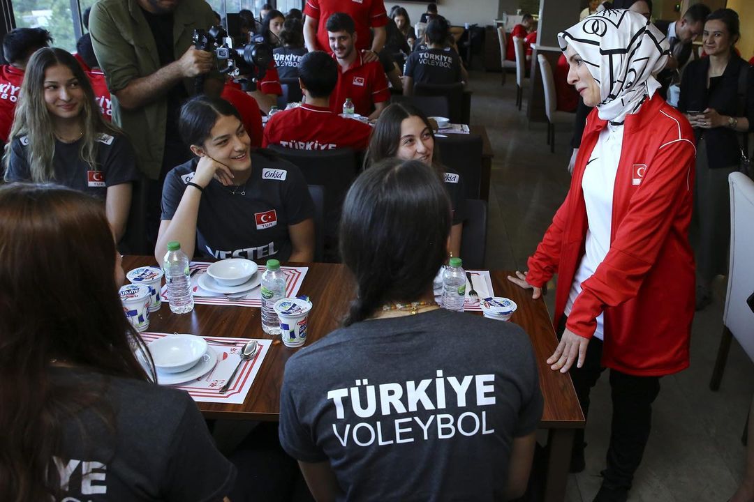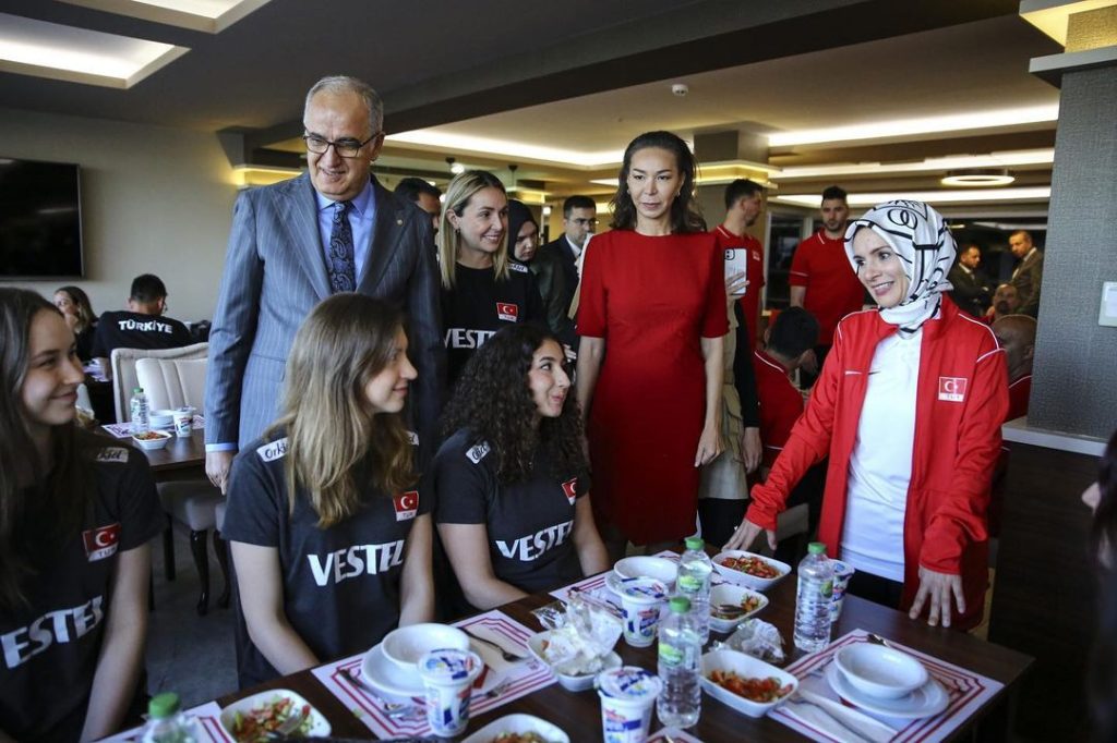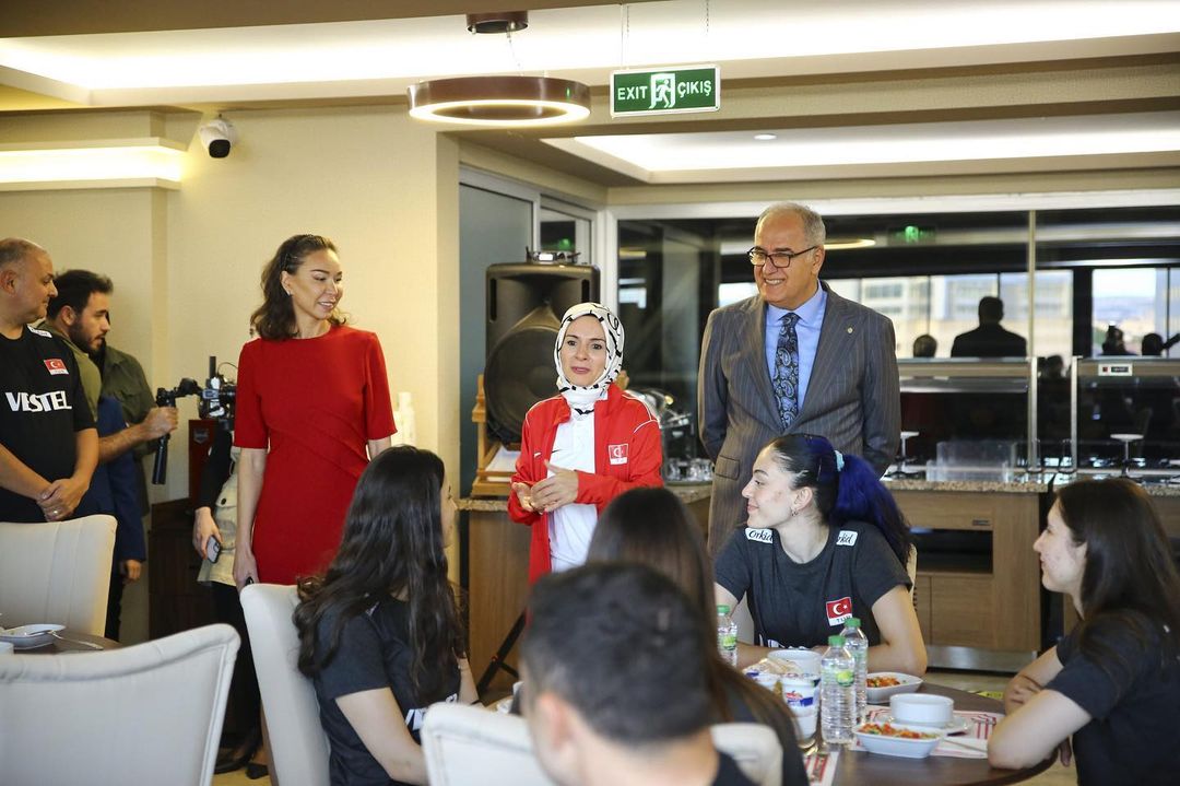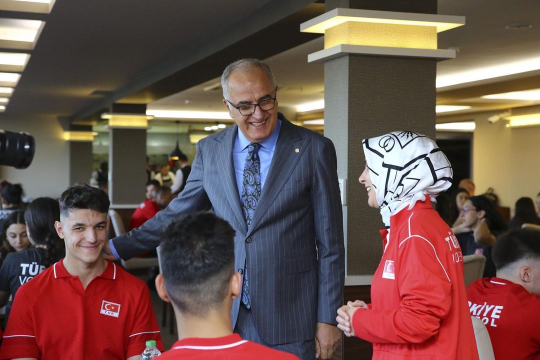 ”Bugün sizlerle birlikte olduğum için çok mutluyum. İnşallah yıllar sonra da sizleri alkışlıyor oluruz. Ülkemizi en iyi şekilde gururlandırmaya devam edersiniz. Umarım gözlerinizdeki ışığınız, motivasyonunuz hiç bitmez. Hepiniz, uluslararası alanda ülkemizi, bayrağımızı temsil ediyorsunuz. Bizler de sizleri desteklemeye, gurur duymaya ve alkışlamaya devam edeceğiz”