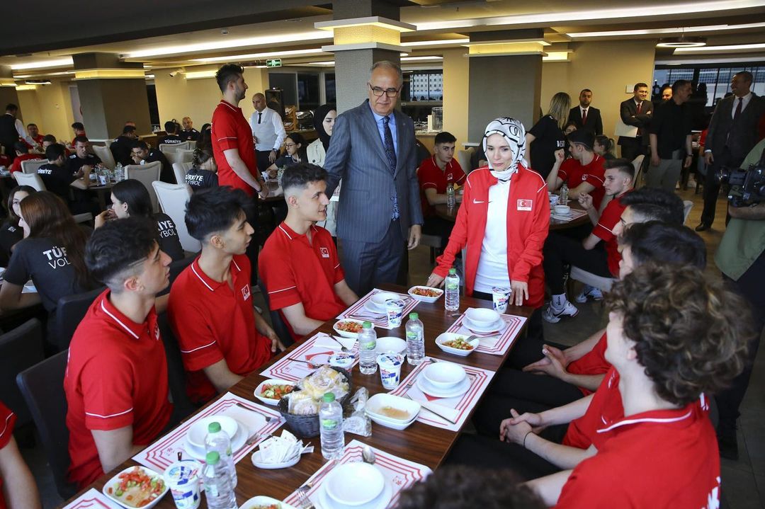 Yemek sonrasında millilerimizle sahada bir süre sohbet eden Bakan Göktaş, sporcularla karşılıklı voleybol oynadı.