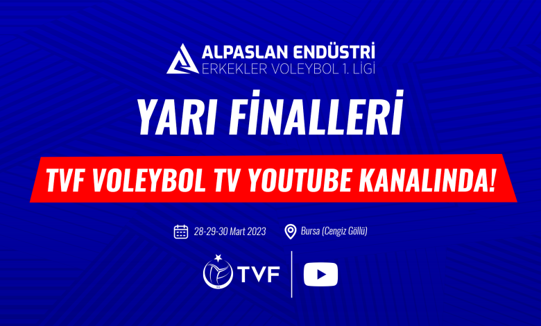 Türkiye Voleybol Federasyonu tarafından düzenlenecek Alpaslan Endüstri Erkekler 1. Ligi Yarı Final Etabı’nın tüm heyecanı, TVF Voleybol TV YouTube kanalından voleybol severler ile buluşacak.