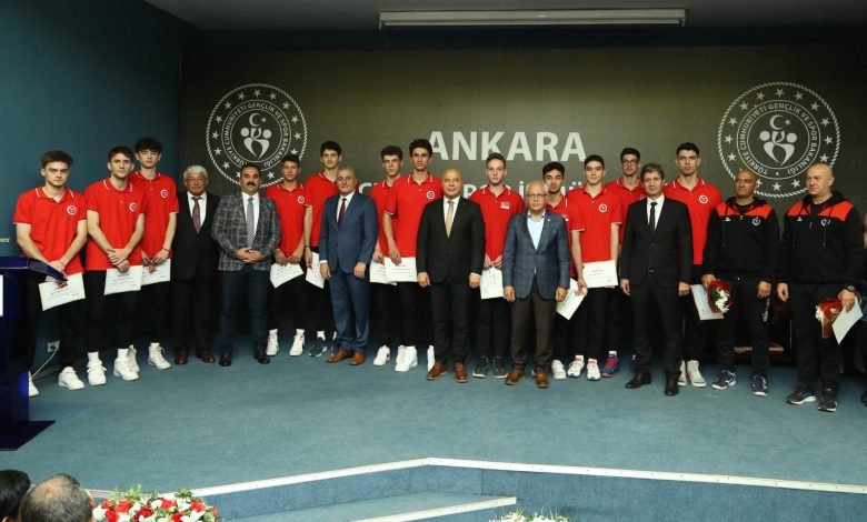 Brezilya’da düzenlenen 2022 Liselerarası Dünya Şampiyonası’nda şampiyon olan TVF Spor Lisesi Erkek Voleybol Takımı’na sertifika ve ödüllerini, Ankara Vali Yardımcısı Dr. Ayhan Özkan, Ankara Gençlik ve Spor İl Müdürü Mustafa Çelik ve Amatör Spor Kulüpleri Konfederasyonu Genel Sekreteri Abdullah Albunar takdim etti.