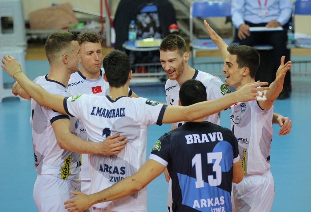 AXA Sigorta Efeler Ligi’nde Haliliye Belediyespor’u 3-0 mağlup ederek normal sezonu 68 puanla tamamlayan Arkas Spor, şampiyonun belli olacağı Play-Off 1. Etap maçlarında oynamayı garantiledi. Sezon içinde eksiklikler yaşamasına rağmen genç kadrosuyla nefes kesen ligi 23 galibiyetle tamamlayan mavi-beyazlı ekibin erteleme maçlarının tamamlanmasıyla Play-Off yarı finalindeki rakibi belli olacak. AXA Sigorta Kupa Voley B Grubu’nda da ilk iki maçını kazanarak çeyrek finale çıkmayı daha önceden garantileyen Arkas Spor, 5 Mart’ta erteleme maçında Tokat Belediye Plevne ile Bursa’da karşılaşacak. Tur biletini alan İzmir ekibinin, erteleme karşılaşmalarının tamamlanmasından sonra kupadaki yeni maç rotası belli olacak.