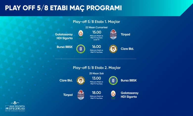 AXA Sigorta Efeler Ligi Metin Görgün Sezonu’nda Play-off 5/8 etabı başlıyor.