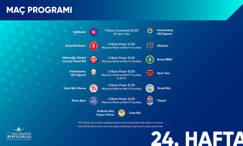 AXA Sigorta Efeler Ligi Metin Görgün Sezonu’nda 24. hafta, yarın oynanacak Halkbank-Fenerbahçe HDI Sigorta karşılaşmasıyla başlayacak.