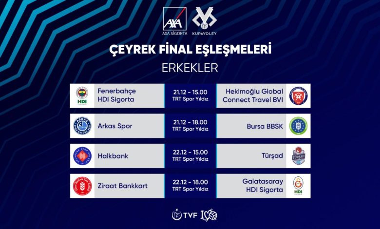 2022-2023 Axa Sigorta Kupa Voley erkekler kategorisinde çeyrek final heyecanı başlıyor.