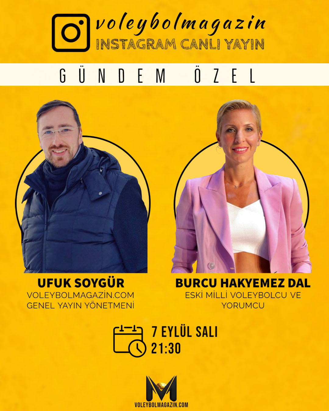Eski milli voleybolcu ve yorumcu Burcu Hakyemez Dal, @voleybolmagazin instagram hesabında yayınlanan Voleybolmagazin.Com Genel Yayın Yönetmeni Ufuk Soygür’ün hazırlayıp sunduğu Gündem Özel programına konuk olacak.