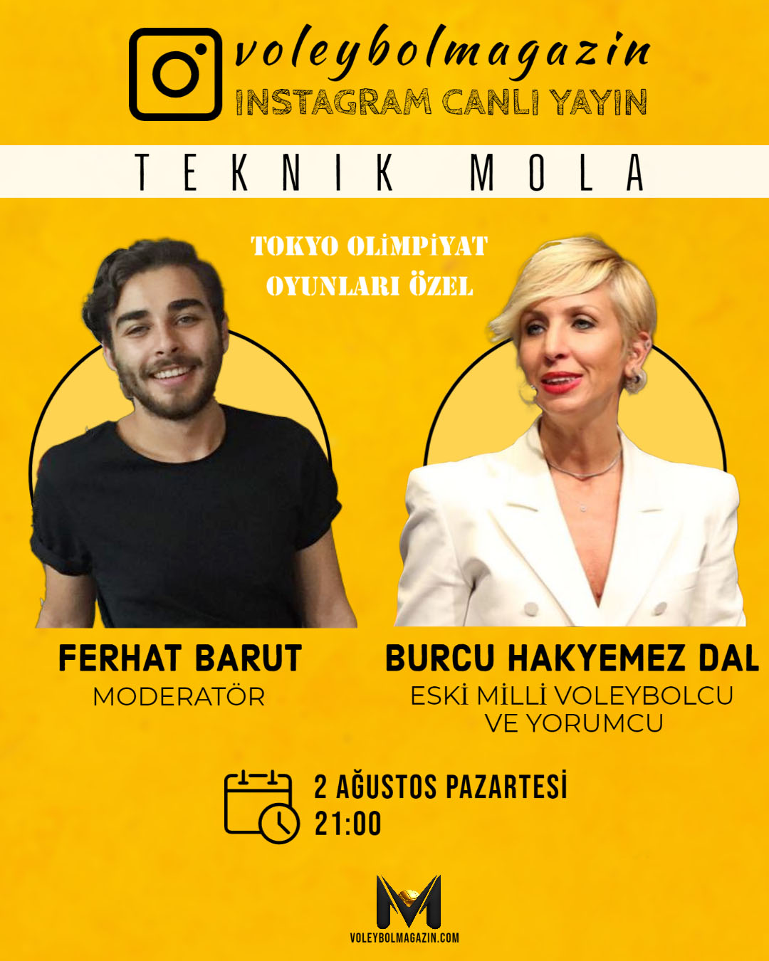 Eski milli voleybolcu ve yorumcu Burcu Hakyemez Dal, @voleybolmagazin instagram hesabında yayınlanan Ferhat Barut’un hazırlayıp sunduğu Teknik Mola programına konuk olacak.
