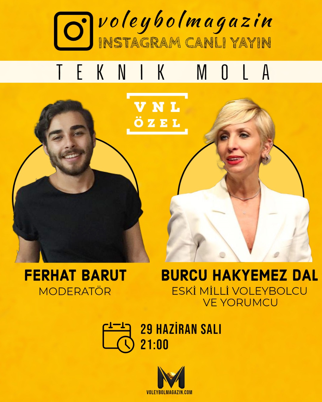 Eski milli voleybolcu ve yorumcu Burcu Hakyemez Dal, @voleybolmagazin instagram hesabında yayınlanan Ferhat Barut’un hazırlayıp sunduğu Teknik Mola programına konuk olacak.