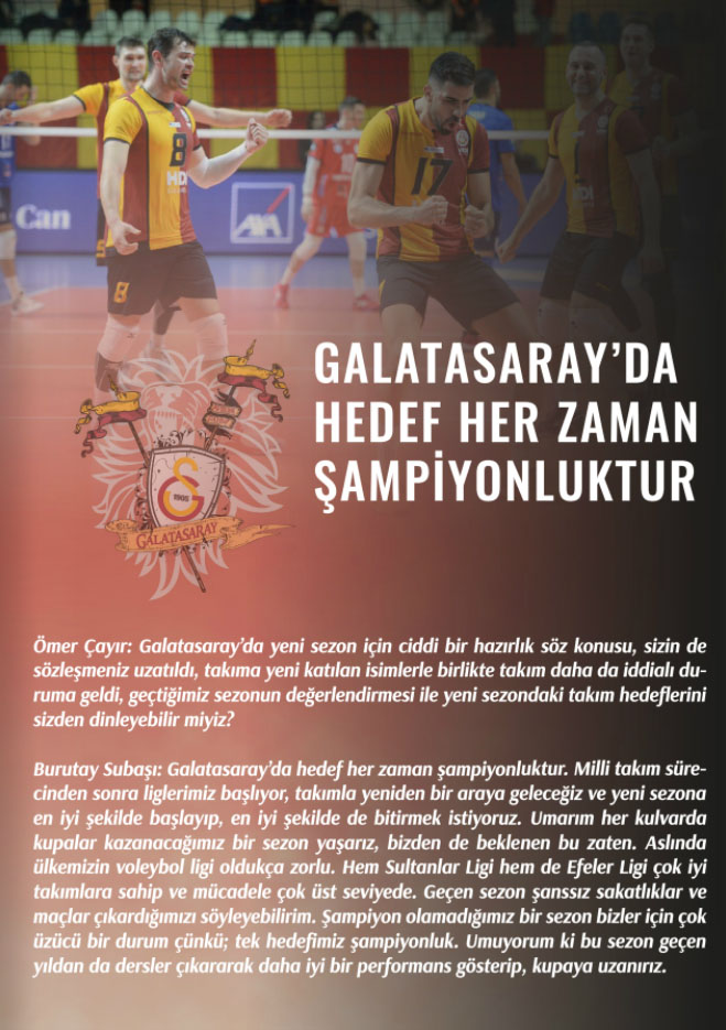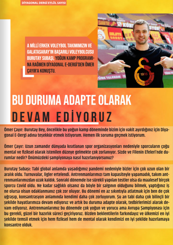 Efeler Ligi takımlarından Galatasaray’ın smaçörü Burutay Subaşı, Diyagonal E-Dergi Eylül sayısına konuk oldu.