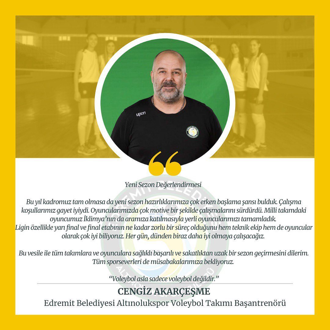 Sigorta Shop Kadınlar Voleybol 1. Lig takımlarından Edremit Belediyesi Altınoluk’un baş antrenörü Cengiz Akarçeşme, yeni sezon öncesi değerlendirmelerde bulundu.
