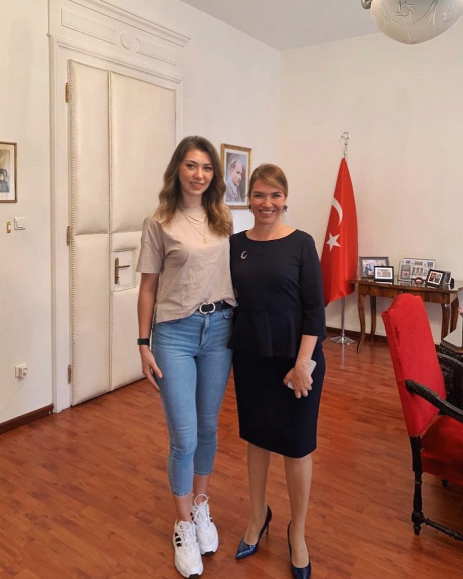 Ceyda Aktaş: “Bugün Budapeşte Türk Büyükelçiliğimizi ziyaret ederek, Değerli Büyükelçimiz Sayın Gülşen Karanis Ekşioğlu ile tanışma şerefine nail oldum. Tüm samimiyetinizle beni makamınızda ağırladığınız ve misafirperverliğiniz için teşekkür eder, en kısa zamanda sizleri Bekescsaba’daki bir maçımda görmekten onur duyarım.” dedi.