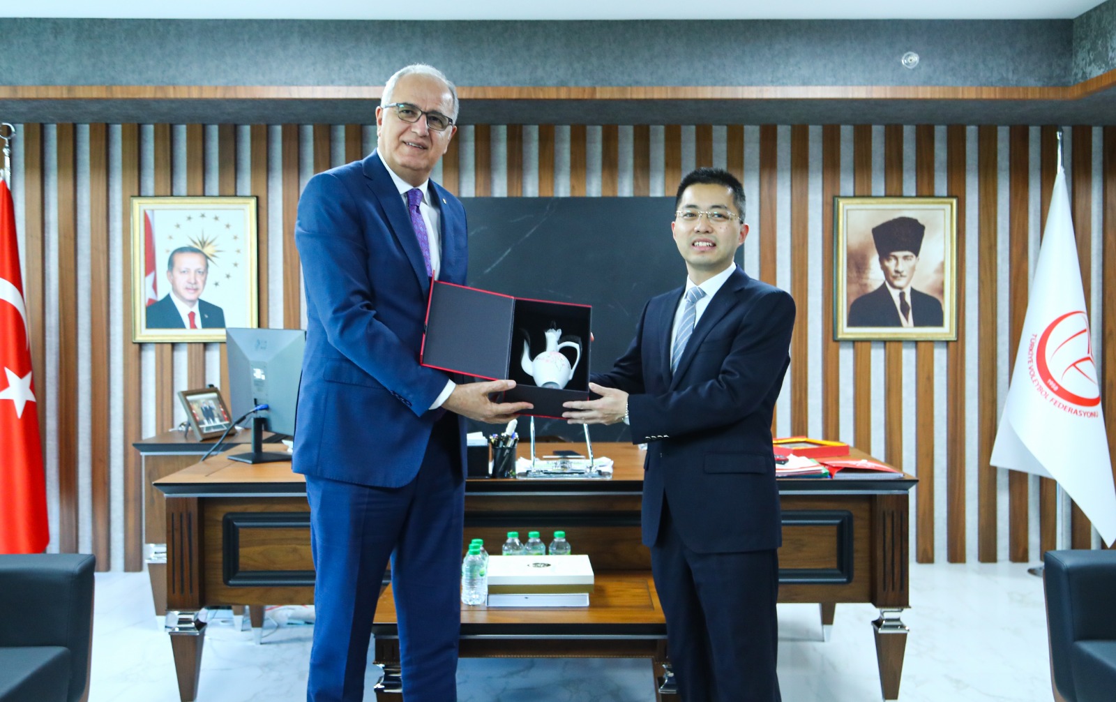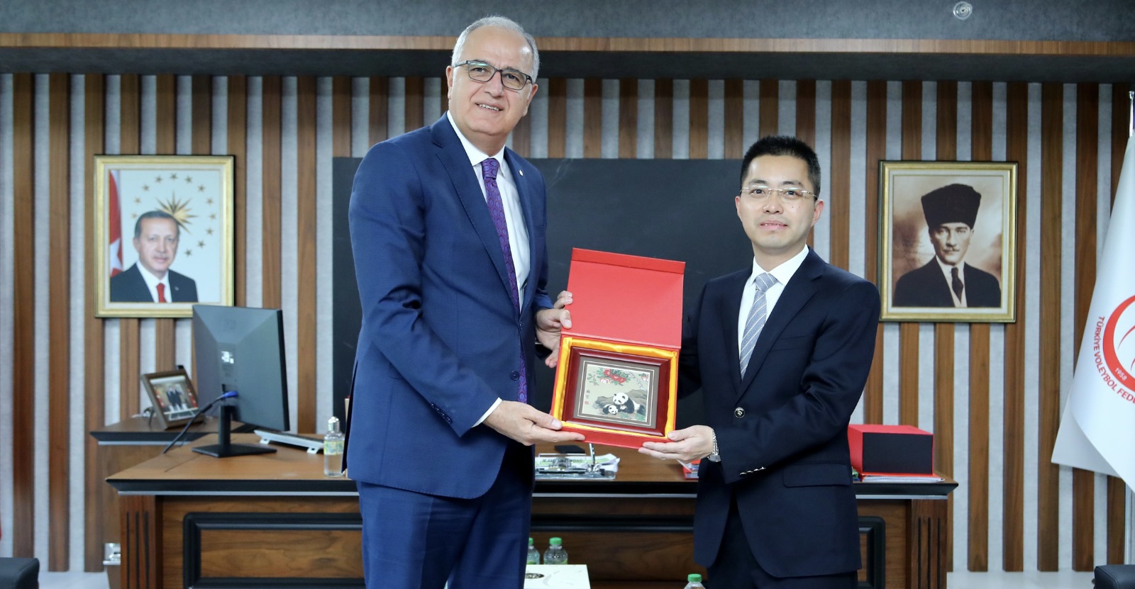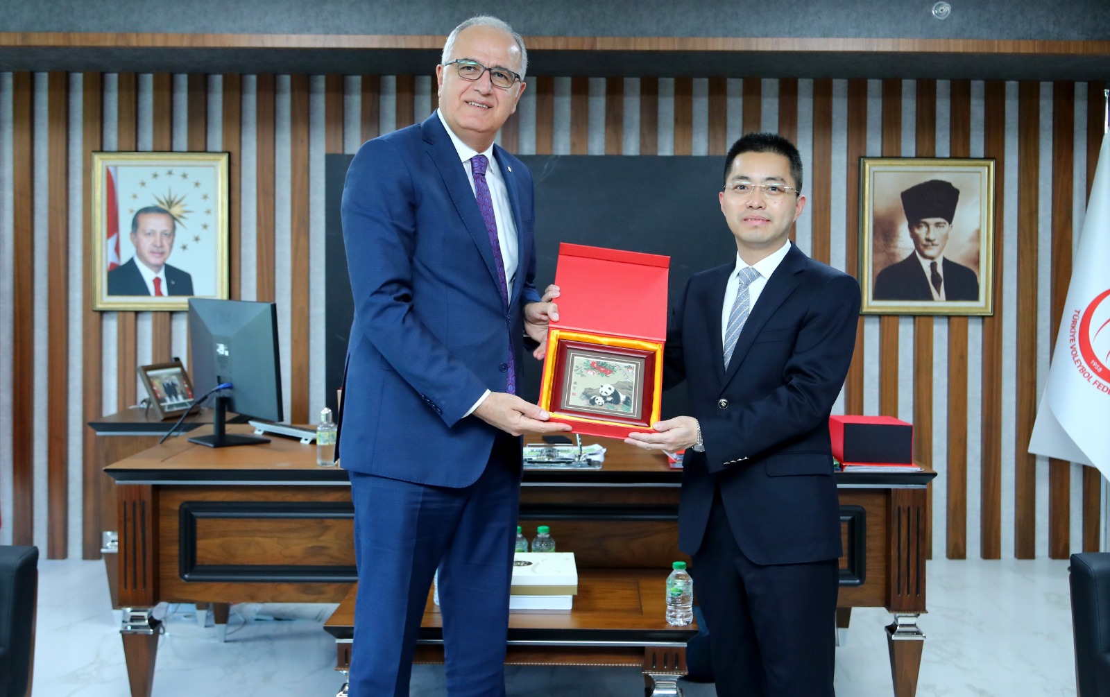 Çin Halk Cumhuriyeti Ankara Büyükelçiliği Kültür Ataşesi Li Qin, TVF Başkanı Mehmet Akif Üstündağ’ı makamında ziyaret etti.