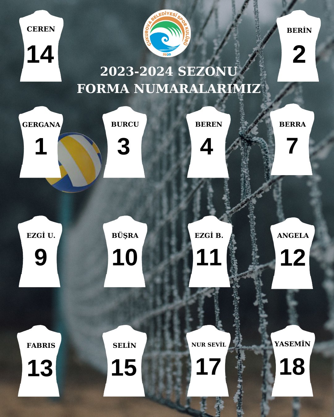 Çukurova Belediyesi’nin 2023-2024 sezonu forma numaraları şöyle: