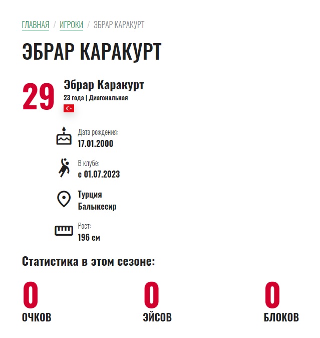 www.vc-lokomotiv.ru internet sitesinde Ebrar Karakurt’un forma numarası yer aldı:
