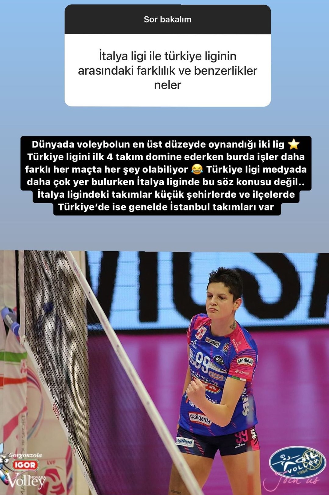 “Dünyada voleybolun en üst düzeyde oynandığı iki lig ⭐ Türkiye ligini ilk 4 takım domine ederken burda işler daha farklı her maçta her şey olabiliyor 😂 Türkiye ligi medyada daha çok yer bulurken İtalya liginde bu söz konusu değil.. İtalya ligindeki takımlar küçük şehirlerde ve ilçelerde Türkiye’de ise genelde İstanbul takımları var”