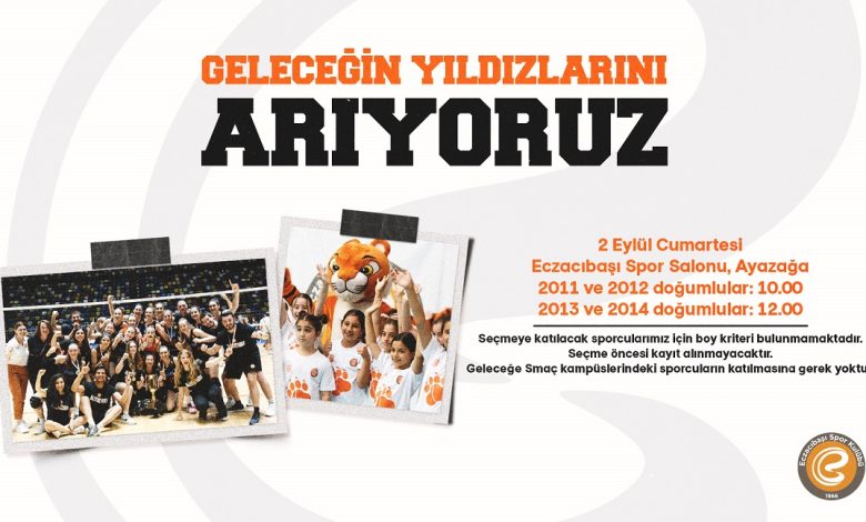 Türk voleybolunun lokomotiflerinden olan Eczacıbaşı Spor Kulübü geleceğin yıldızlarını arıyor. Binlerce sporcuyu Türk voleyboluna kazandıran Eczacıbaşı Spor Kulübü’nün voleybol seçmeleri 2 Eylül 2023 Cumartesi günü Eczacıbaşı Spor Salonu’nda gerçekleşecek.