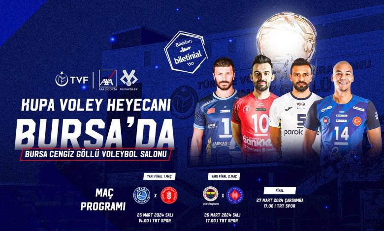 Erkekler AXA Sigorta Kupa Voley Final Etabı, 26-27 Mart 2024 tarihlerinde Bursa TVF Cengiz Göllü Voleybol Salonu’nda düzenlenecek.