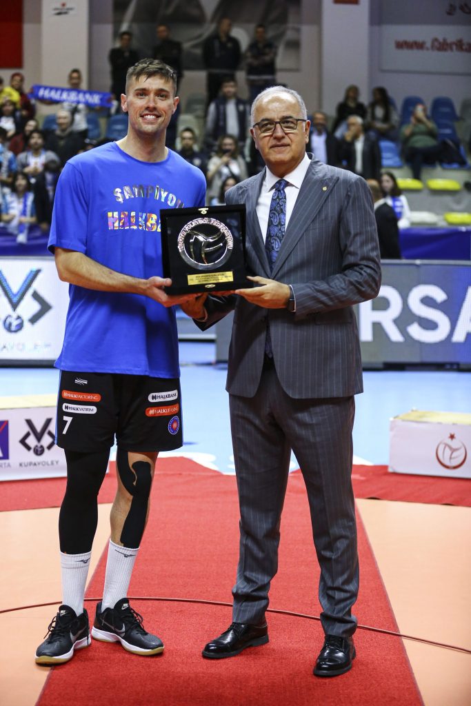 Final karşılaşmasının en değerli oyuncusu (MVP) seçilen Thomas Jaeschke’ye ödülünü Türkiye Voleybol Federasyonu Başkanı Mehmet Akif Üstündağ takdim etti.