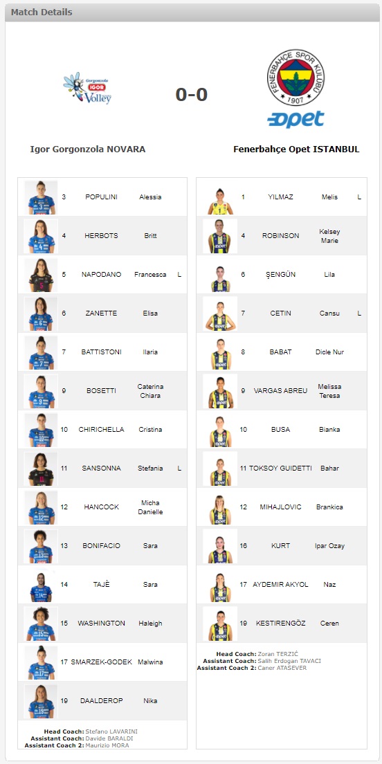 Fenerbahçe Opet’in takım kaptanı, orta oyuncu Eda Erdem Dündar ve orta oyuncu Beliz Başkır’ın isimleri, CEV’in internet sitesinde bulunan maç esame listesinde yer almadı.
