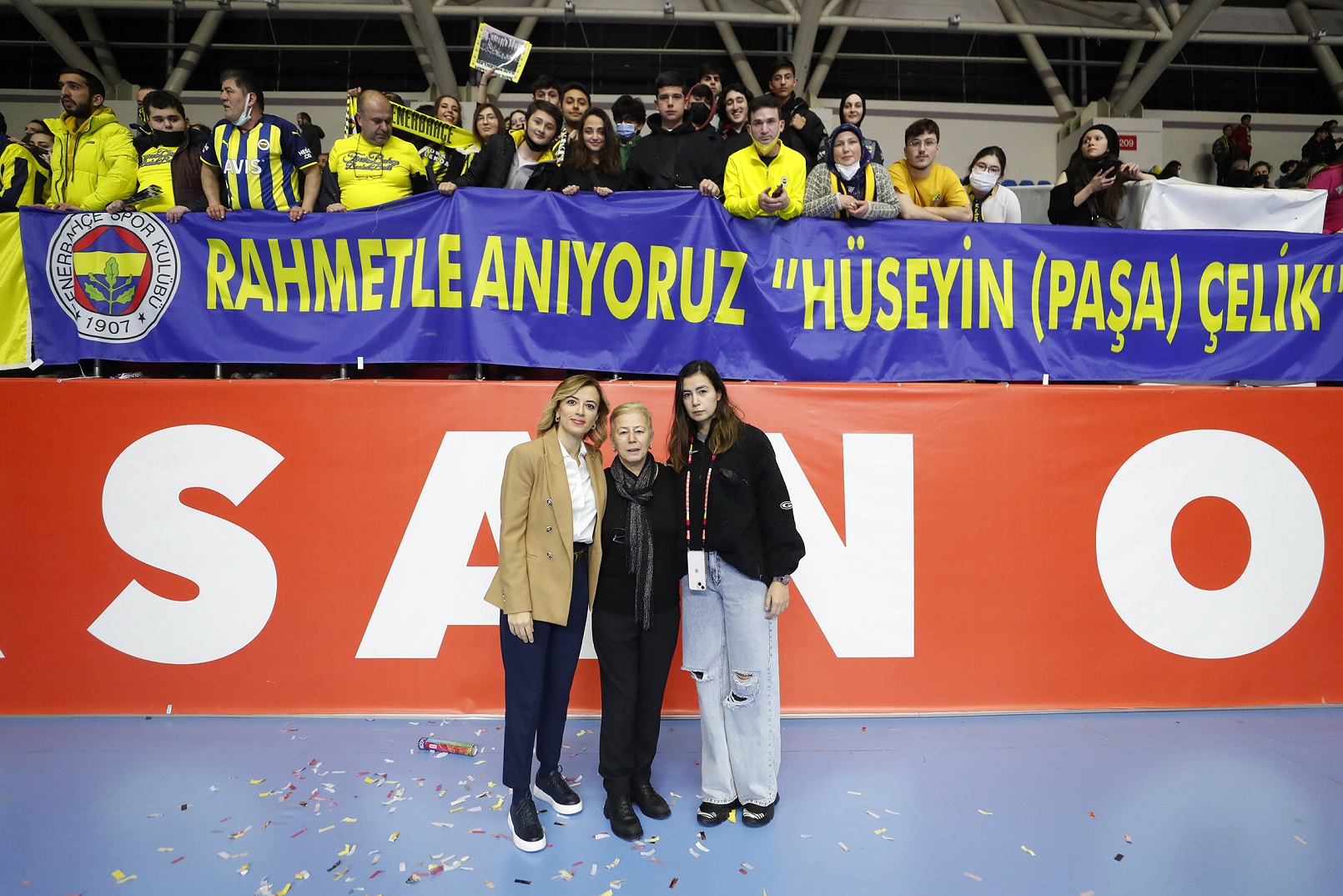 Fenerbahçe taraftarı, 2005 yılında vefat eden Fenerbahçeli eski futbolcu ve şu an Fenerbahçe Opet’in menajerliğini yapan Pelin Çelik’in babası ‘Paşa’ lakaplı Hüseyin Çelik’i açtıkları pankartla andı.
