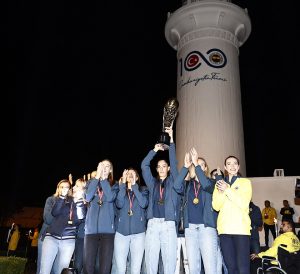 Ardından Başkanımız Ali Y. Koç, meşaleyi çanağa bırakarak Fener’i sembolik olarak yaktı ve ışık şovu başladı. Tören, İzmir Marşı ve ışık şovuyla devam etti.