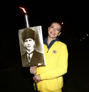 Kortej, ellerinde Atatürk resimleri, bayraklar ve meşalelerle bando takımı eşliğinde marşlar söyleyerek Ülker Stadyumu Fenerbahçe Şükrü Saracoğlu Spor Kompleksi’ne yürüdü.