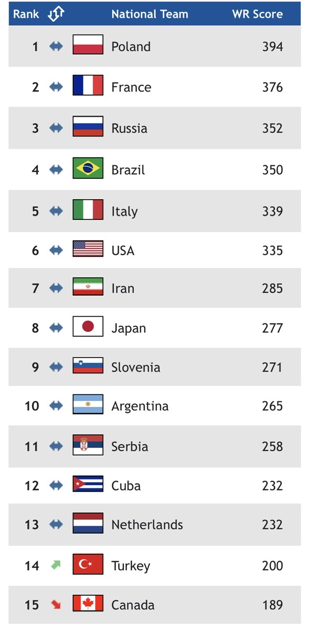 Filenin Efeleri, FIVB Dünya Şampiyonası’nda aldığı Kanada galibiyetinin ardından FIVB Dünya Sıralamasında 14. sıraya yükseldi.