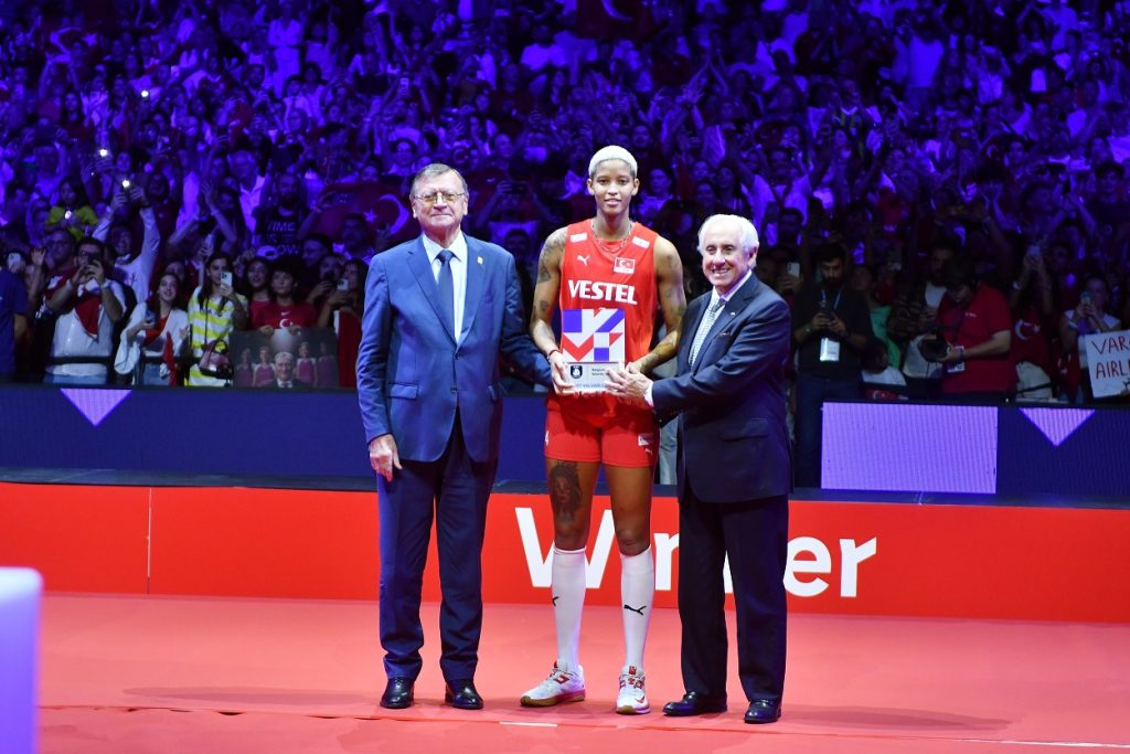 Final karşılaşmasının ardından yapılan törende Avrupa Şampiyonası’nın en değerli oyuncusu Milli Takımımızın pasör çaprazı Melissa Vargas seçildi. Vargas’a ödülünü FIVB Başkanı Dr. Ary Graça ve CEV Başkanı Aleksandar Boricic takdim etti.