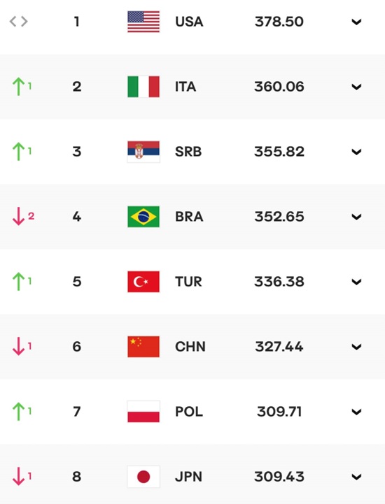 2023 FIVB Kadınlar Voleybol Milletler Ligi’nde Filenin Sultanları, 3-0’lık Brezilya galibiyetinin ardından dünya sıralamasında bir basamak yükselerek beşinci sırada yer aldı.