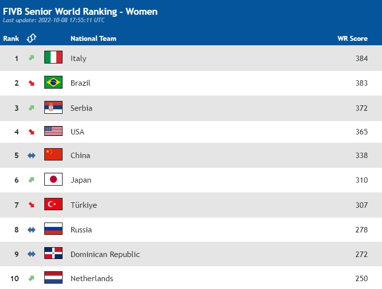 FIVB Dünya Şampiyonası son 16 turundaki son maçında Sırbistan’a 3-0 mağlup olan Filenin Sultanları, aldığı bu mağlubiyetin ardından FIVB dünya sıralamasında 7. sıraya geriledi.