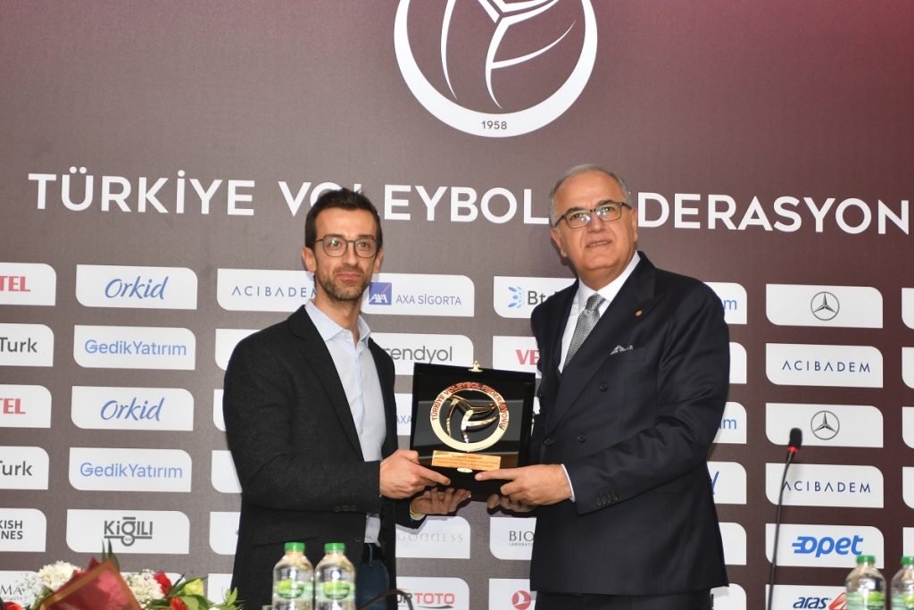 İmzaların atılmasının ardından TVF Başkanı Üstündağ, Daniele Santarelli’ye teşekkür plaketi, çiçek ve A Milli Takım tişörtü takdim etti.