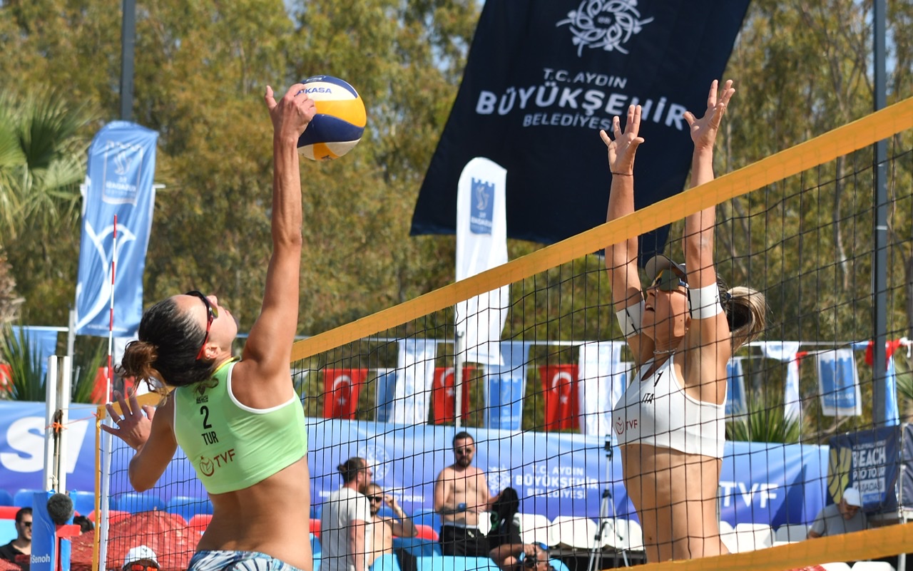 Türkiye Voleybol Federasyonu (TVF), Aydın Büyükşehir Belediyesi ve Kuşadası Belediyesi iş birliğiyle düzenlenen Uluslararası Voleybol Federasyonu (FIVB) Plaj Voleybolu Dünya Turu VW Beach Pro Tour Kuşadası Challenge turnuvası, bugün oynanan ana tablo maçlarıyla devam etti.
