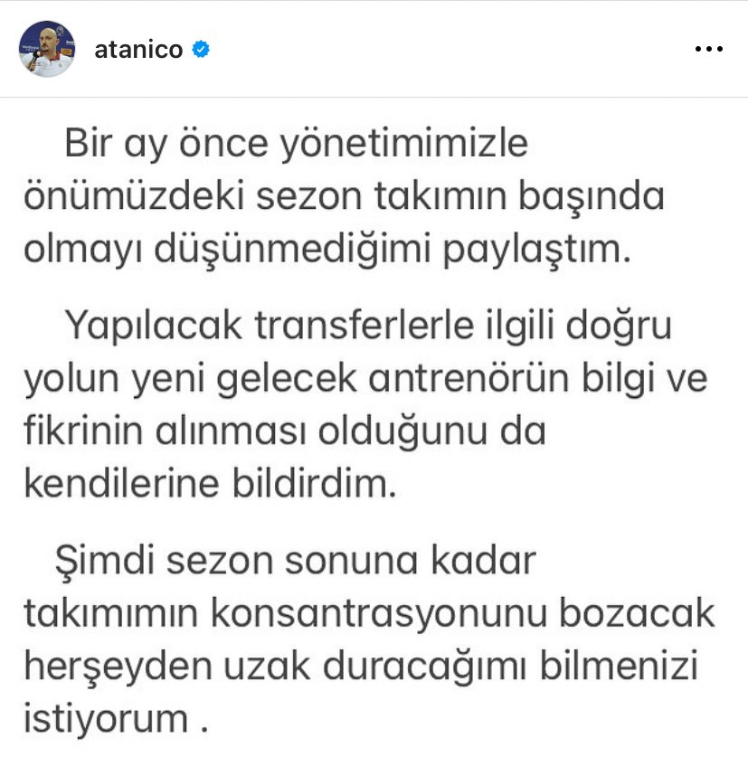 Ataman Güneyligil’in konuyla ilgili olarak sosyal medya hesabından yaptığı açıklama şöyle: