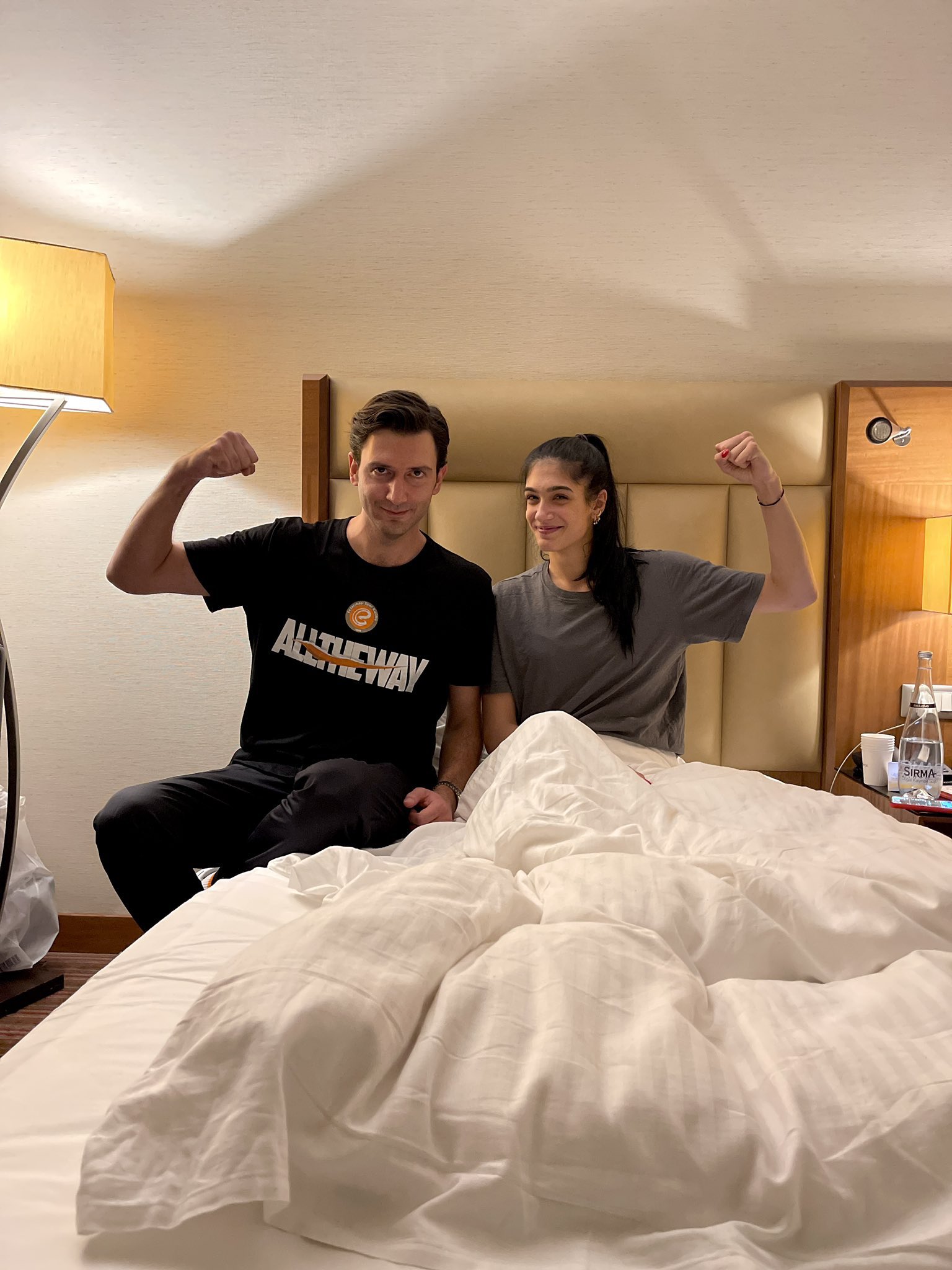 Eczacıbaşı Dynavit’in baş antrenörü Ferhat Akbaş, sakatlık yaşayan oyuncusu Yasemin Güveli’yi ziyaret ederek moral verdi.