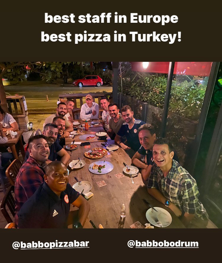 Giovanni Guidetti, sosyal medya hesabından Türkçesi “Avrupa’nın en iyi kadrosu Türkiye’nin en iyi pizzası” anlamına gelen bir yazıyla fotoğraf paylaştı.