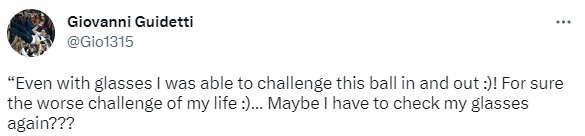 Giovanni Guidetti: “Gözlükle bile bu topa içeride dışarı itirazında bulundum. Kesinlikle hayatımın en kötü challenge’ı. Belki de gözlüklerimi tekrar kontrol etmeliyim.”