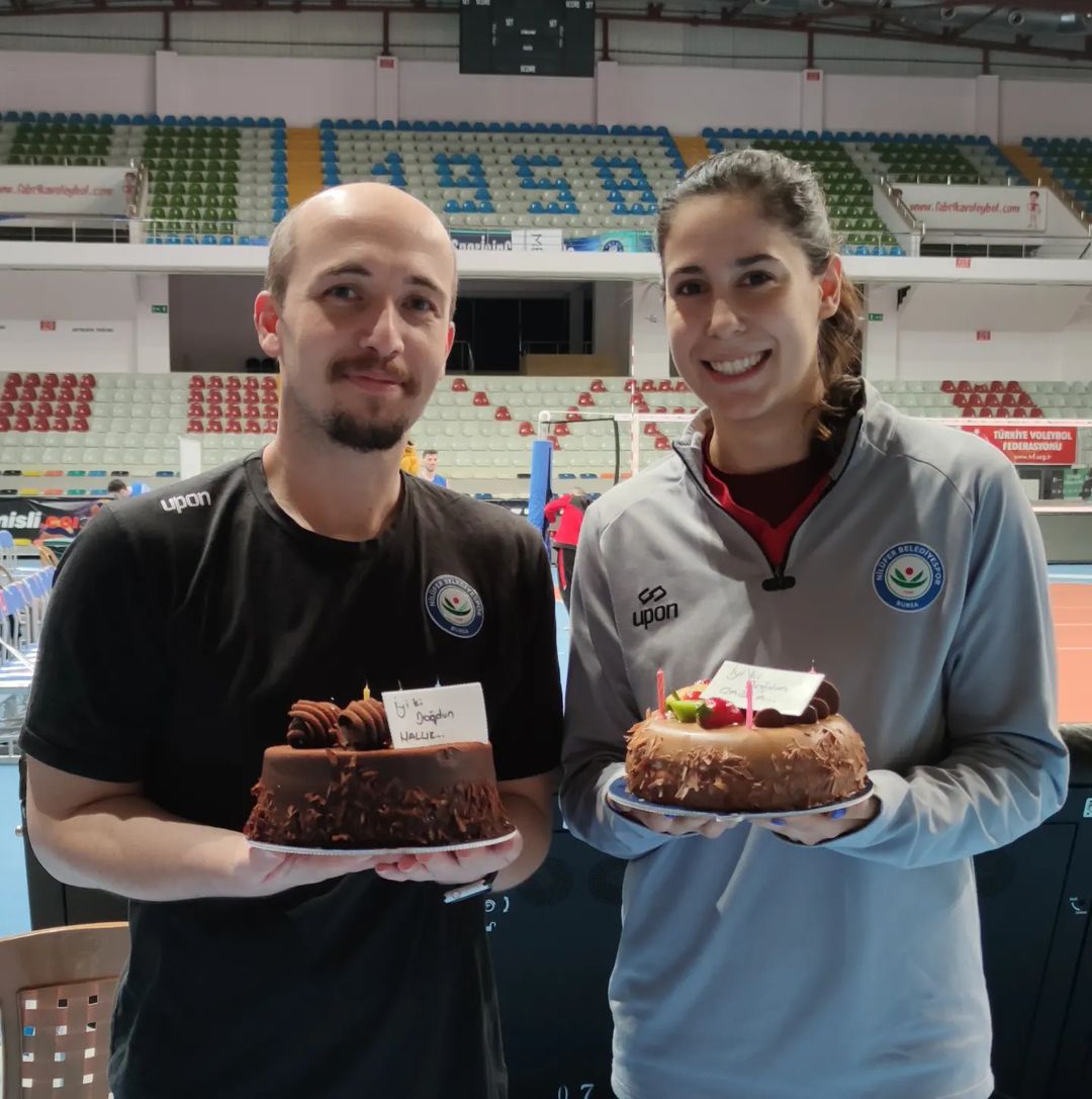 Misli.com Sultanlar Ligi takımlarından Nilüfer Belediyespor’un yardımcı antrenörü Haluk Korkmaz ile takımın pasörü Çağla Akın’ın doğum günü pasta kesilerek kutlandı.