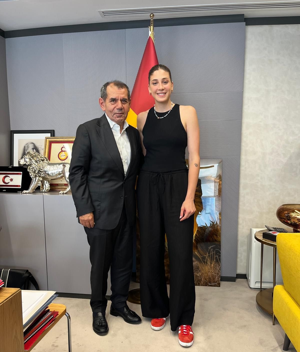 Ali Sami Yen Spor Kompleksi Rams Park’ta gerçekleşen ziyarette Galatasaray Spor Kulübü Başkanı Dursun Aydın Özbek, İlkin Aydın ile uzun süre sohbet etti ve A Milli Kadın Voleybol Takımımıza başarılar diledi.