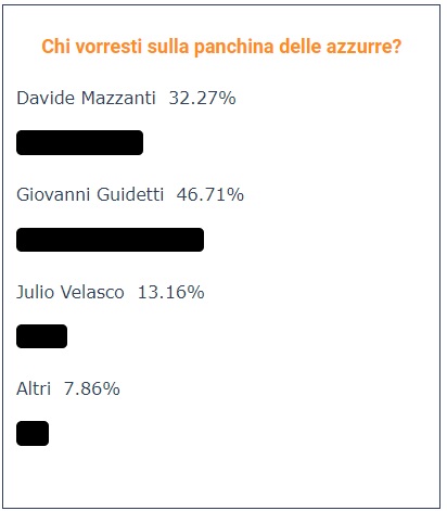 İtalyan voleybol sitesi VolleyNews, sayfasında “İtalya Milli Takımı’nın başında kimi isterdin?” anketi açtı. Ankette Filenin Sultanları ile yolları ayrılan Giovanni Guidetti, % 46.71’lik oyla birinci sırada yer alıyor.