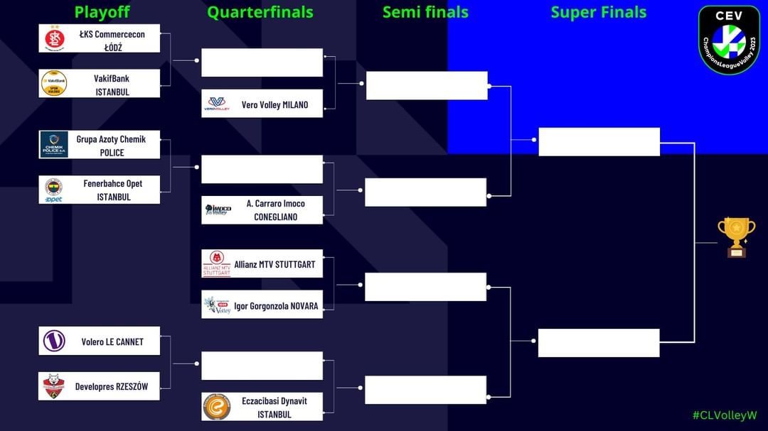 2023 Kadınlar CEV Şampiyonlar Ligi’nde play-off turu ve çeyrek final eşleşmeleri şu şekilde: