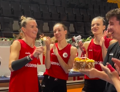 Sultanlar Ligi takımlarından Kuzeyboru’da Bosna Hersek’li smaçör Edina Begic’in doğum günü Erik Dalı şarkısı eşliğinde kutlandı.