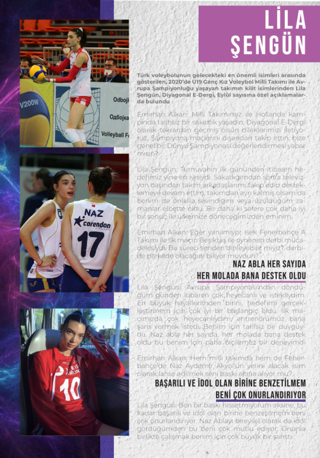 Yeni sezonda Sultanlar Ligi takımlarından Sarıyer Belediyespor’da forma giyecek olan pasör Lila Şengün, Diyagonal E-Dergi Eylül sayısına konuk oldu.
