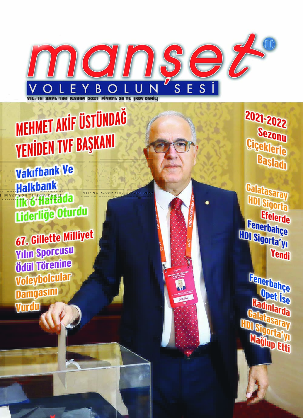 Enver Bağlarbaşı’nın genel yayın yönetmenliğini yaptığı, aylık yayımlanan voleybol dergisi, Manşet Voleybolun Sesi 186. Kasım sayısı raflardaki yerini aldı.