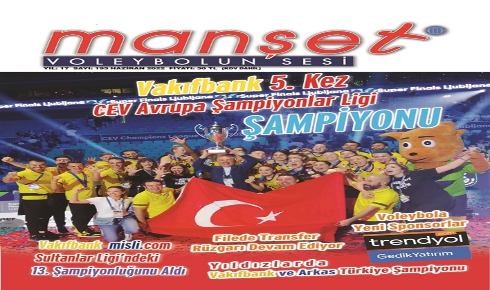 Enver Bağlarbaşı’nın genel yayın yönetmenliğini yaptığı, aylık yayınlanan voleybol dergisi, Manşet Voleybolun Sesi 193. Haziran sayısı raflardaki yerini aldı.