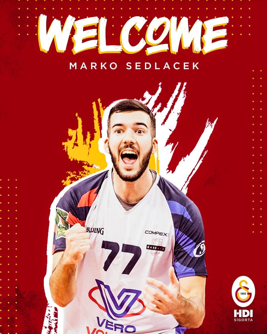 Galatasaray HDI Sigorta Erkek Voleybol Takımımız, Hırvat smaçör Marko Sedlacek ile 1 yıllık sözleşme imzaladı.