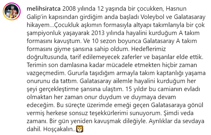 AXA Sigorta Efeler Ligi takımlarından Galatasaray HDI Sigorta ile tecrübeli smaçör Melih Sıratça’nın yolları ayrıldı. Melih Sıratça, sosyal medya hesabından yaptığı paylaşımla bir veda mesajı yayınladı.
