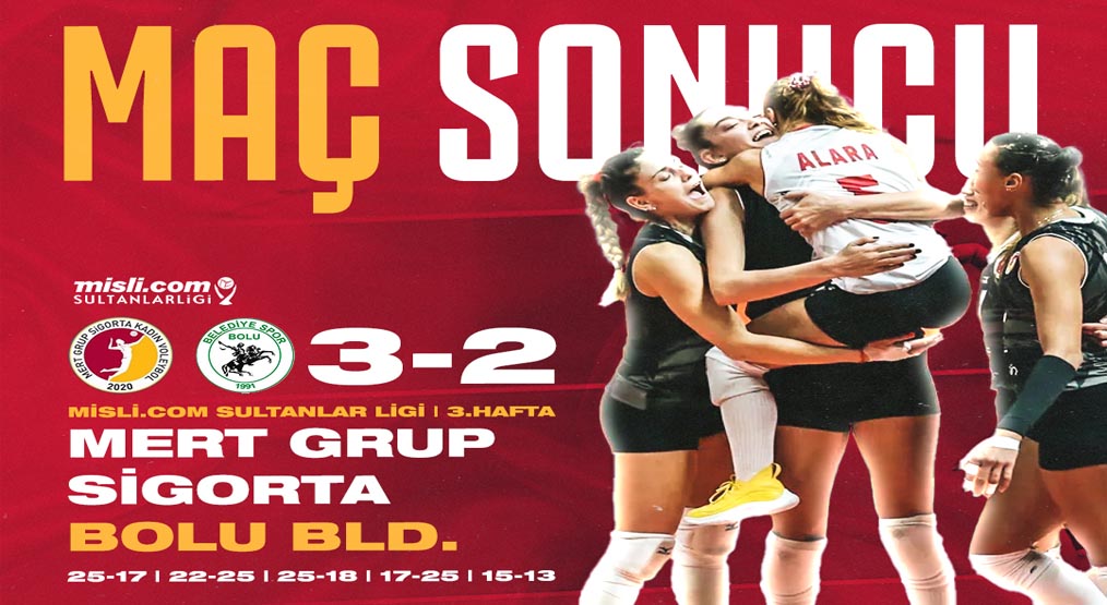 Misli.com Sultanlar Ligi’nde Mert Grup Sigorta sahasında Bolu Bld.’yi 3-2 (25-17, 22-25, 25-18, 17-25, 15-13) mağlup ederek 3. maçında 2. galibiyetini aldı. TVF Başkent Voleybol Salonu’da oynanan mücadelede Mert Grup Sigorta’da Gaila 32, Paskova 15, Biryukova 10 ve İkbal 10 sayıyla oynarken Bolu Bld.’de ise Havlickova 26, İdil 12 ile Kharcenko 10 sayı üretti.
