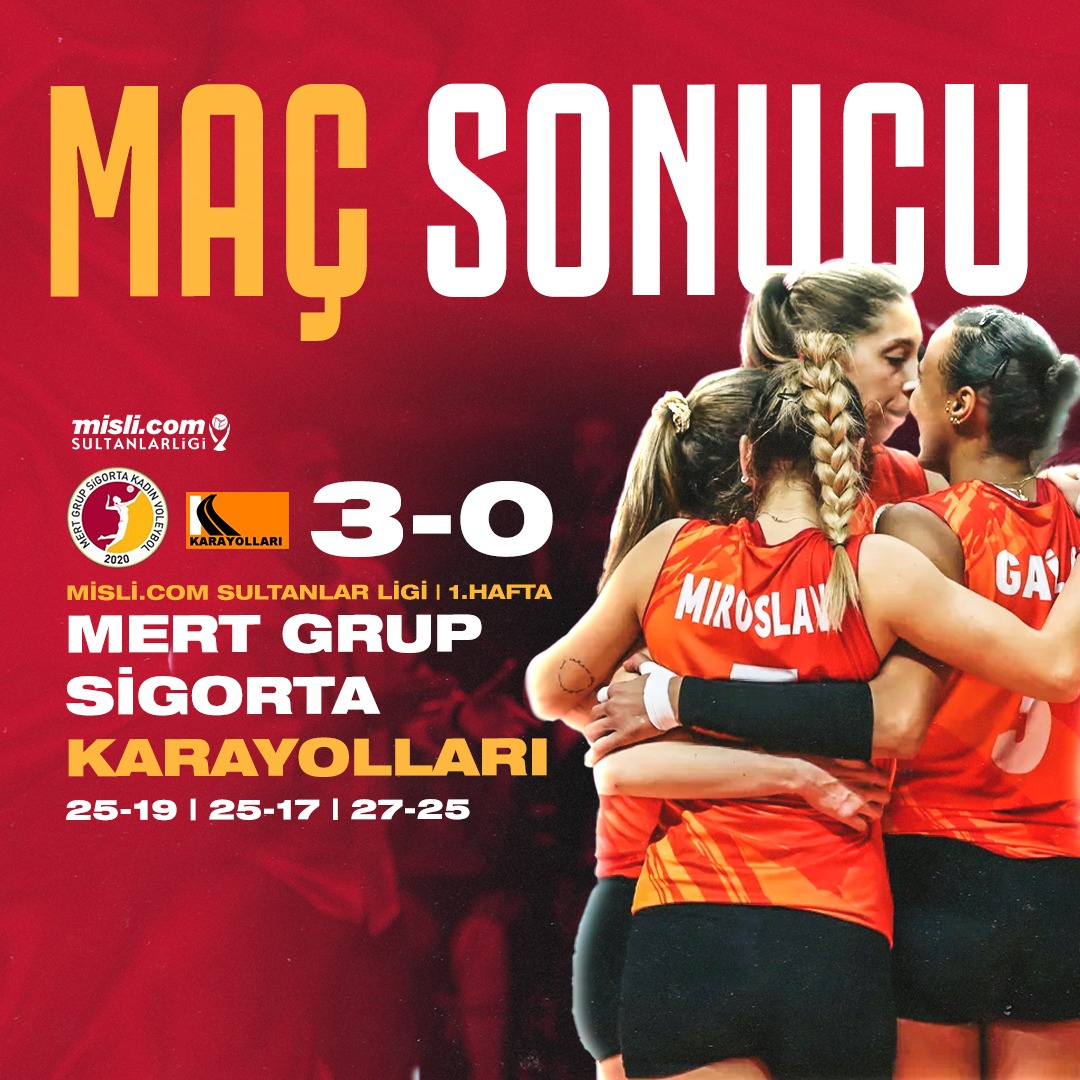 Misli.com Sultanlar Ligi ilk hafta maçında Mert Grup Sigorta, Karayolları’nı 3-0 (25-19, 25-17, 27-25) mağlup etti. TVF Başkent Voleybol Salonu’nda oynanan mücadelede Mert Grup Sigorta’da Biryukova 19, Paskova 13, Gaila 10 ve İkbal 10 sayıyla oynayarak galibiyeti getiren isimler olurken Karayolları’nda ise Gözde 14 sayı buldu.