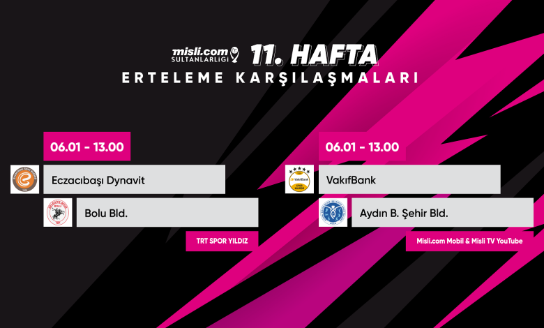 Misli.com Sultanlar Ligi’nde 11. haftanın erteleme karşılaşmaları yarın (6 Ocak Cuma) oynanacak.