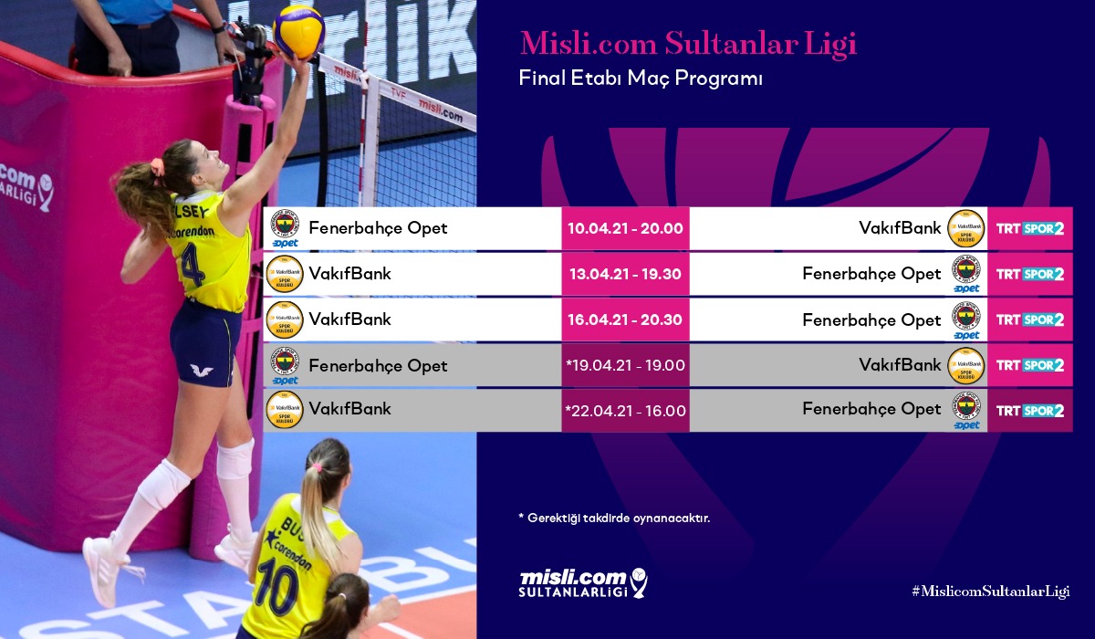 | 10 Nisan Cumartesi | 20.00 | Fenerbahçe Opet-VakıfBank | TRT SPOR 2 |